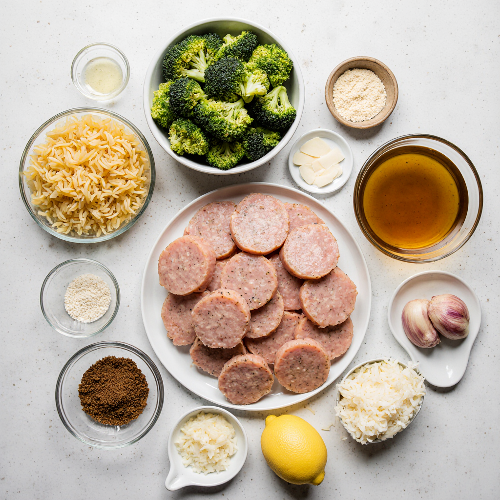 The orzo and broth create a creamy base, while the sausage and broccoli add protein and crunch.