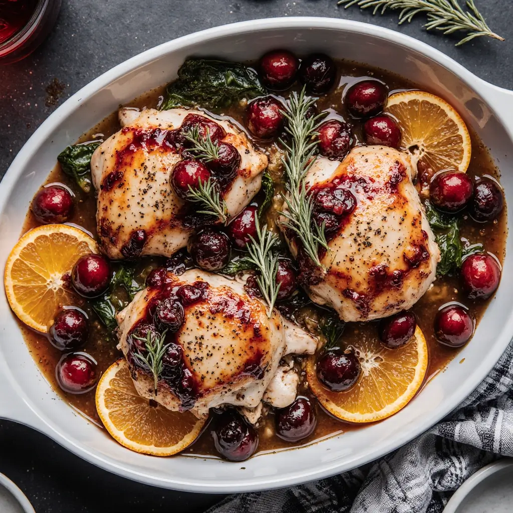 This dish brings together the comforting richness of roasted chicken with the festive sweetness of cranberries and oranges. It tastes like the holidays in a skillet warm, bright, nostalgic, and full of flavor.